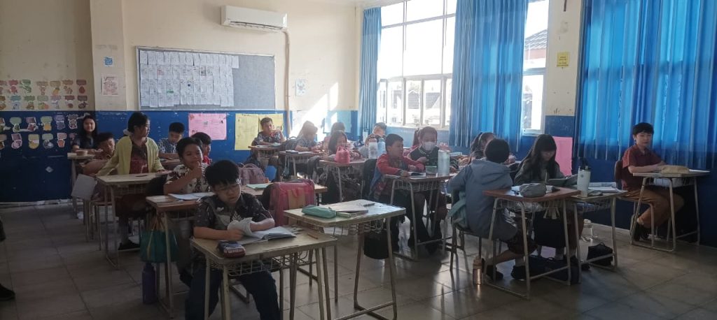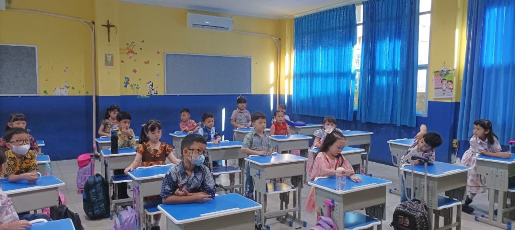 Dengan penuh keceriaan, anak-anak mengikuti pelajaran sambil memaknai kebanggaan memakai batik sebagai bagian dari identitas bangsa.