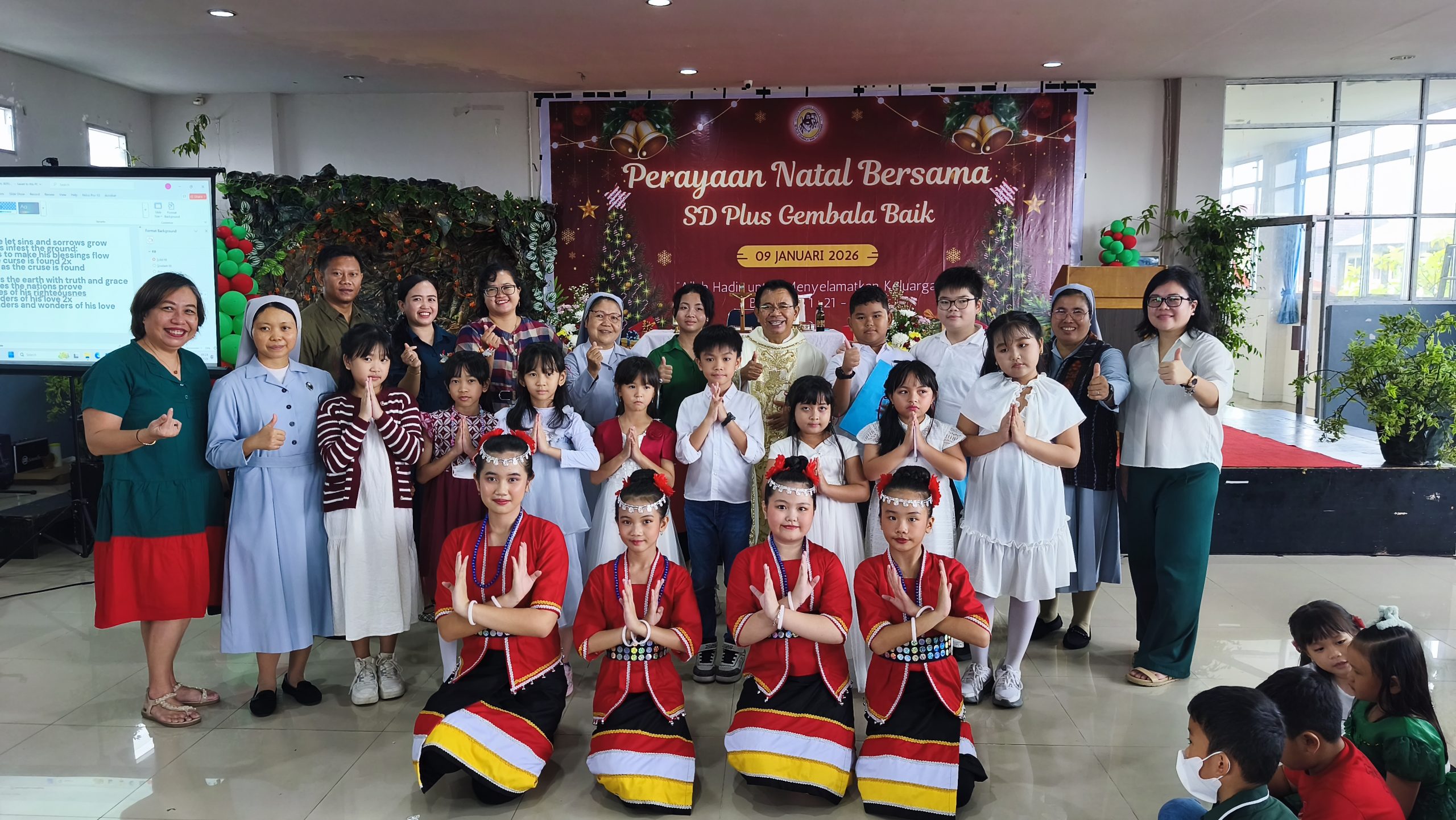 Pada hari Jumat, 9 Januari 2026, keluarga besar SD Plus Gembala Baik melaksanakan Perayaan Natal Bersama yang bertempat di aula sekolah. Acara ini mengusung tema “Allah Hadir untuk Menyelamatkan Keluarga”, yang mengajak seluruh warga sekolah untuk kembali merenungkan makna kehadiran Tuhan dalam kehidupan keluarga sehari-hari.