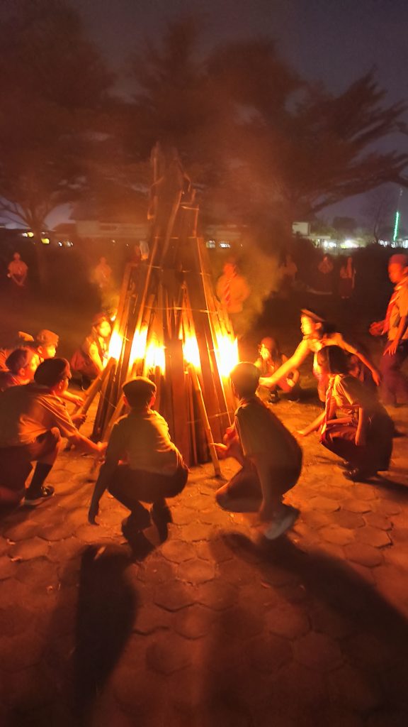 Malam harinya, acara dilanjutkan dengan api unggun dan renungan, yang menjadi momen paling berkesan. Para siswa menampilkan yel-yel, dan menikmati kebersamaan di bawah cahaya api yang hangat serta dilanjutkan dengan barbeque. Kegiatan ini mempererat hubungan dan menciptakan kenangan indah yang tak terlupakan.